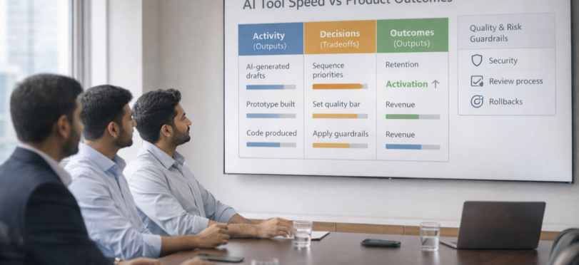 The distinction between outputs and outcomes is explored further in AI tool speed vs product outcomes especially for product and engineering leaders.